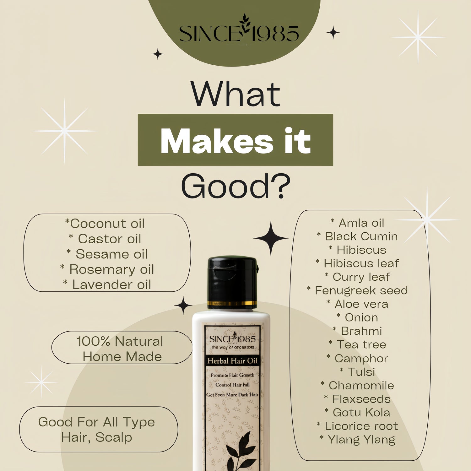 *Since1985 Herbal Hair Oil* is a natural, Ayurvedic hair oil that helps reduce hair fall, promotes growth, and keeps your