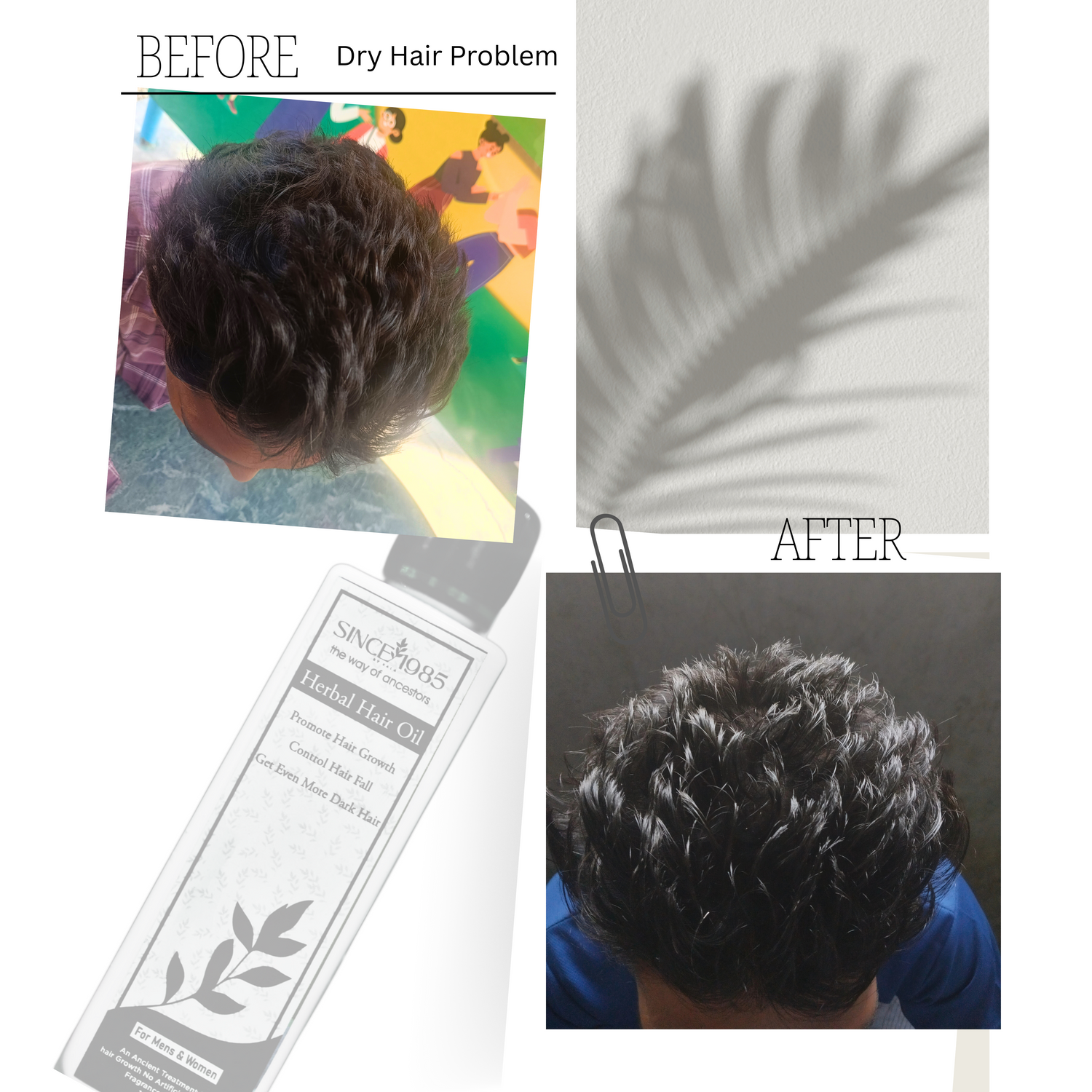 In this dryness problem our since1985 herbal hair oil gives instant shine and nourishment for your hair.and if you use regularly you got your natural butiful black color.
